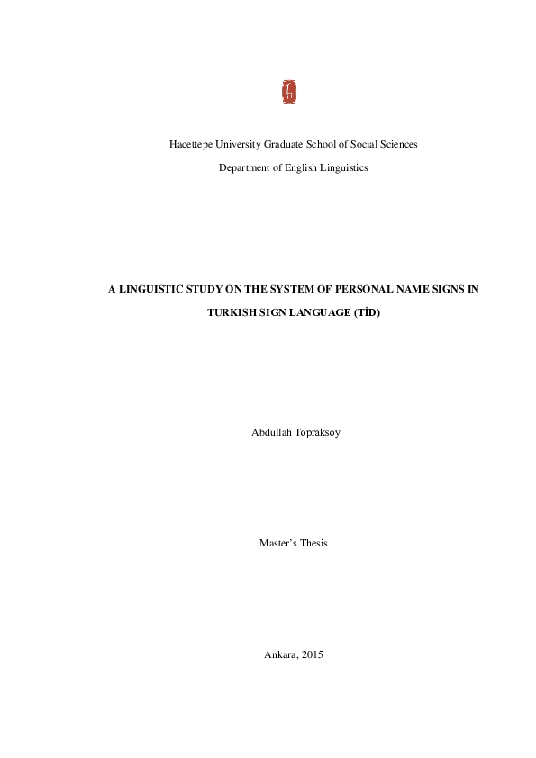 PDF) A Linguistic Study on The System of Personal Name Signs in Turkish Sign Language (TİD) | abdullah topraksoy - Academia.edu