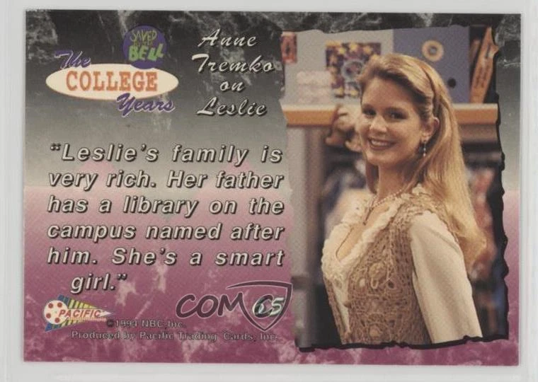 1994 Pacific Saved by the Bell: The College Years Anne Tremko Leslie #65 0ka3 | eBay