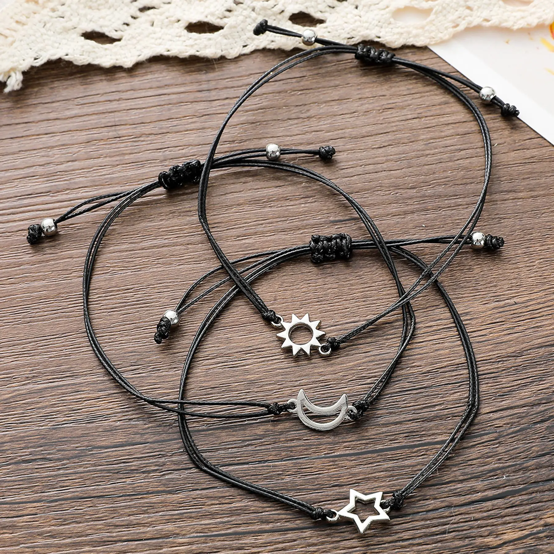 Yeni basit dostluk kart bilezik kişilik alaşım güneş ay yıldız balmumu halat örgülü bilezik 3-piece Set tatil hediye - AliExpress