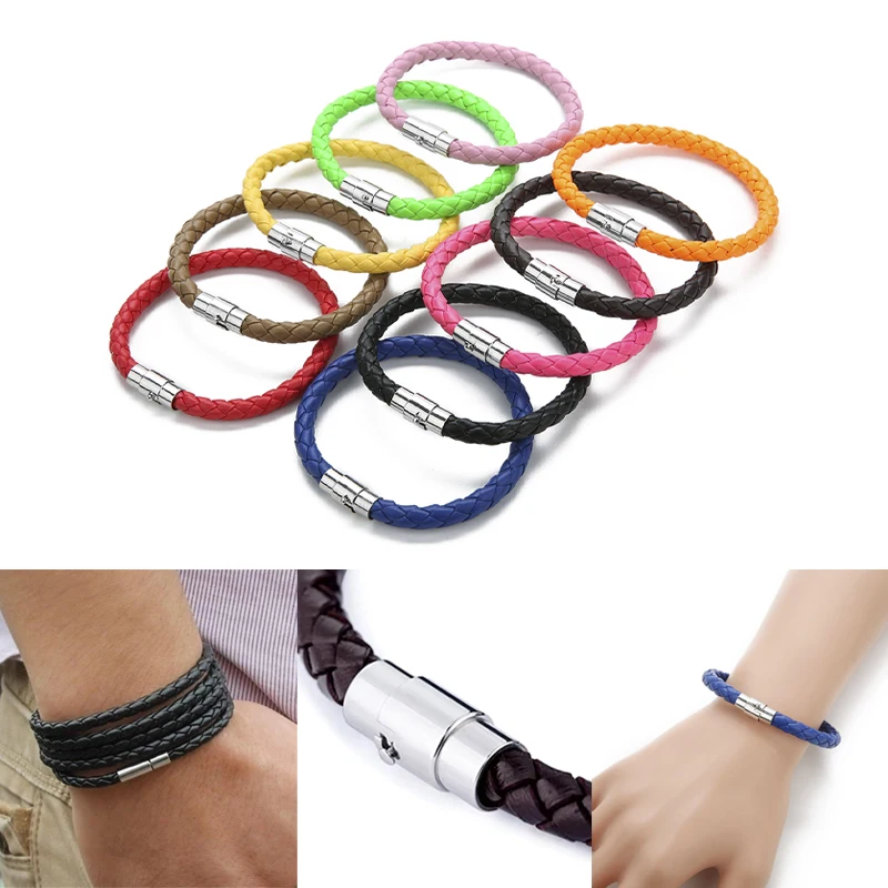 Basit tasarım erkek deri bilezik dostluk bilezik bakır düğme bileklik kadın bileklikler sevgililer günü noel takı hediye - AliExpress