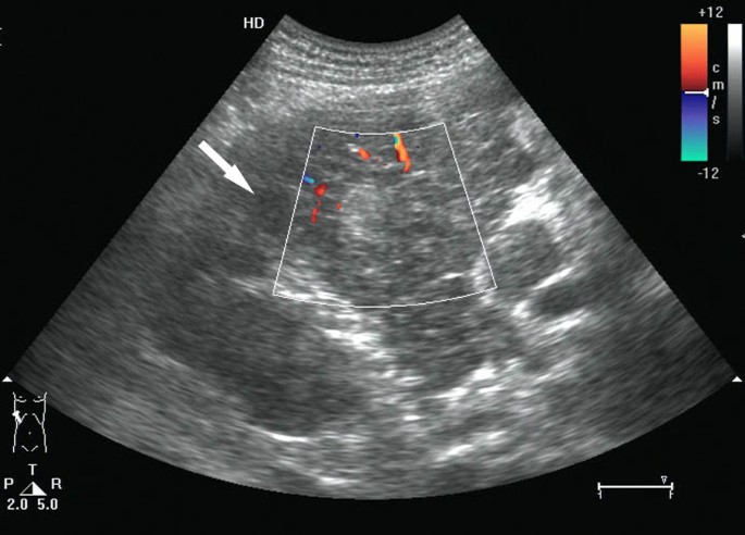 Ultrasonographic images of hepatic hepatoblastoma: there is an... | Download Scientific Diagram