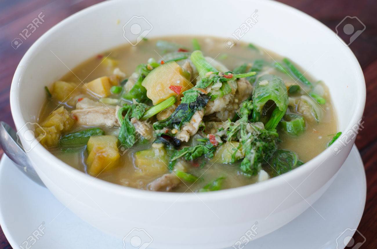 A Kind Of Thai Curry Name Kang Om Kai, Thick Soup Made From Spices And Vegetables With Your Choice Of Meat Stock Photo, Picture and Royalty Free Image. Image 49051956.