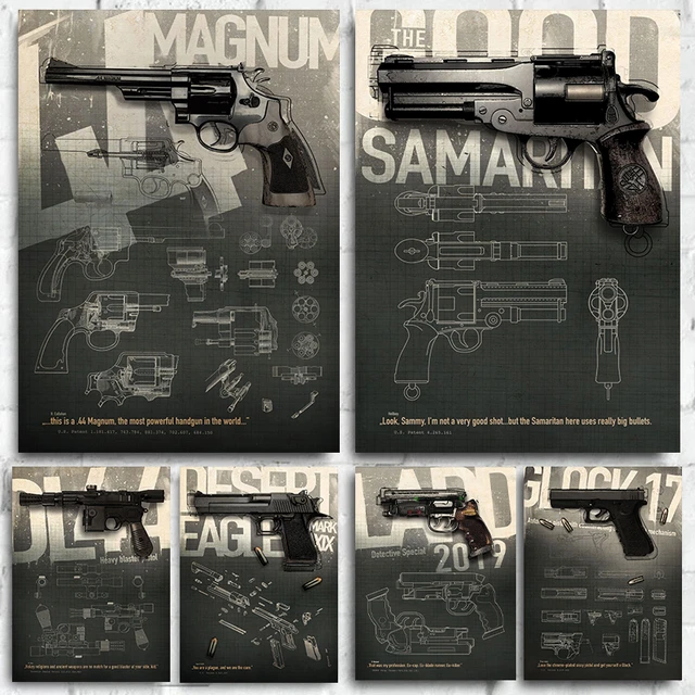 Silah Blueprint tabanca Patent posterler çöl kartal Magnum 44 silah tırnaklar için tuval boyama ve baskılar