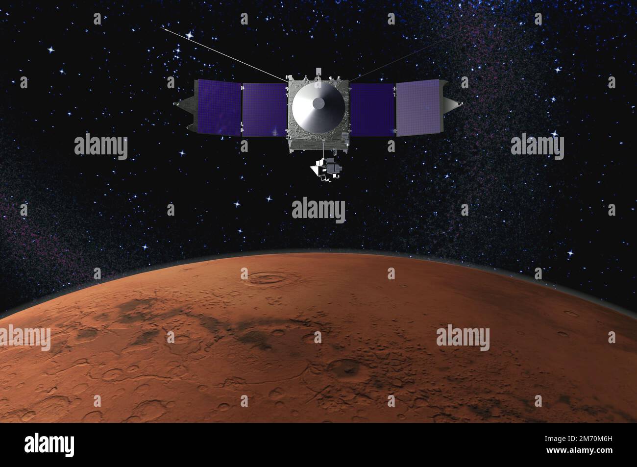MAVEN - space probe designed to study the Martian atmosphere while orbiting Mars - 3d render - elements of this image furnished by NASA Stock Photo - Alamy