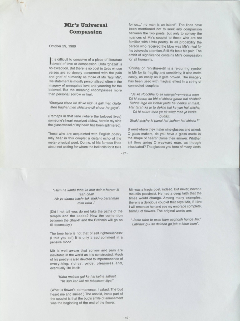 Article On Mir Taqi Mir's Poetry | PDF | Urdu | Poetry