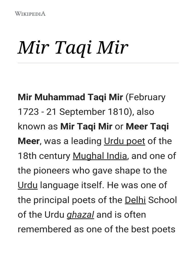 Mir Taqi Mir - Wikipedia PDF | PDF | Urdu | Poetry
