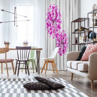 Çiçekler İle Renkli Arka Plan Desenli Pembe Duşperdesi