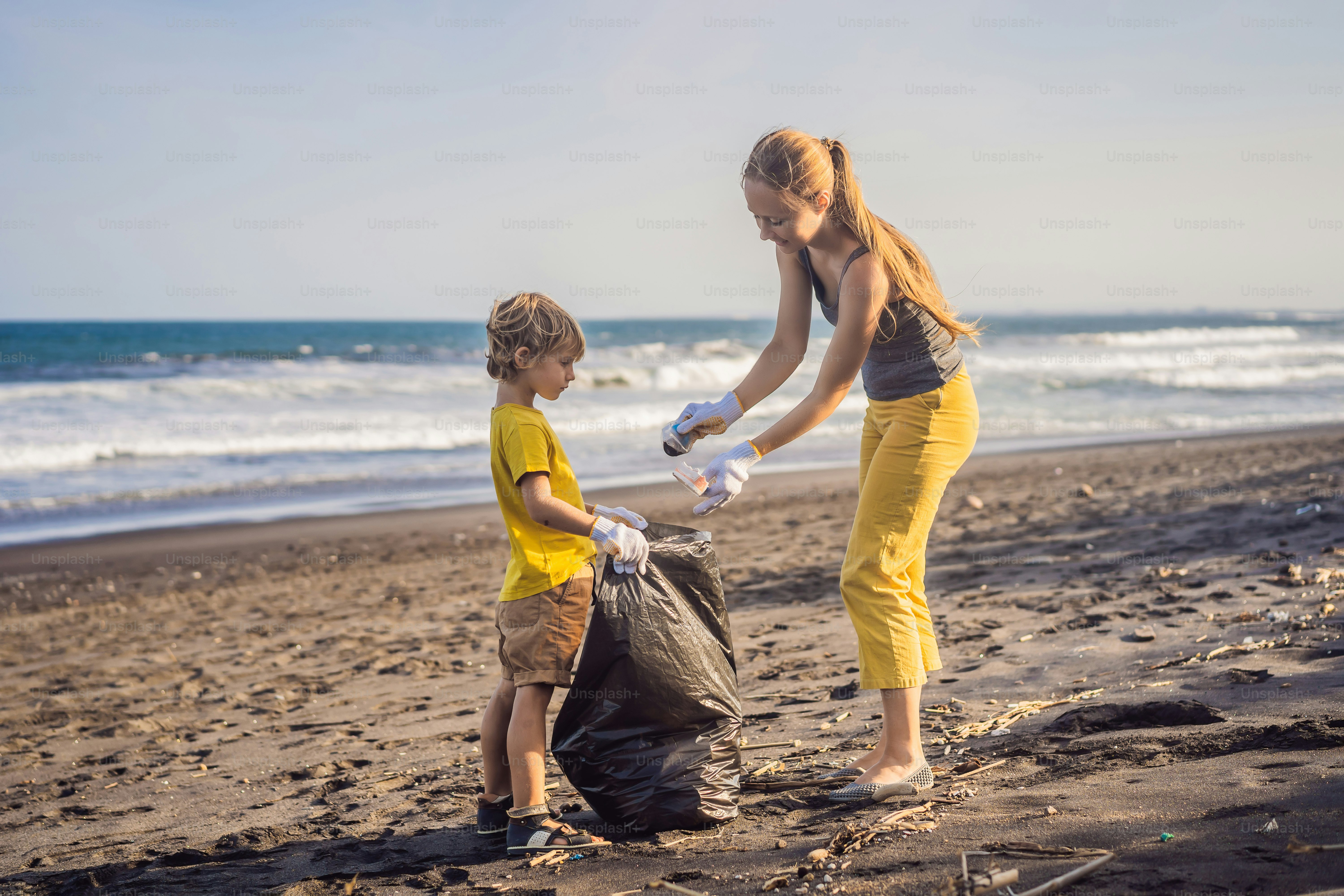 Niños Voluntarios Limpiando La Playa Ilustración del Vector - Ilustración de exterior, contamine: 164303047