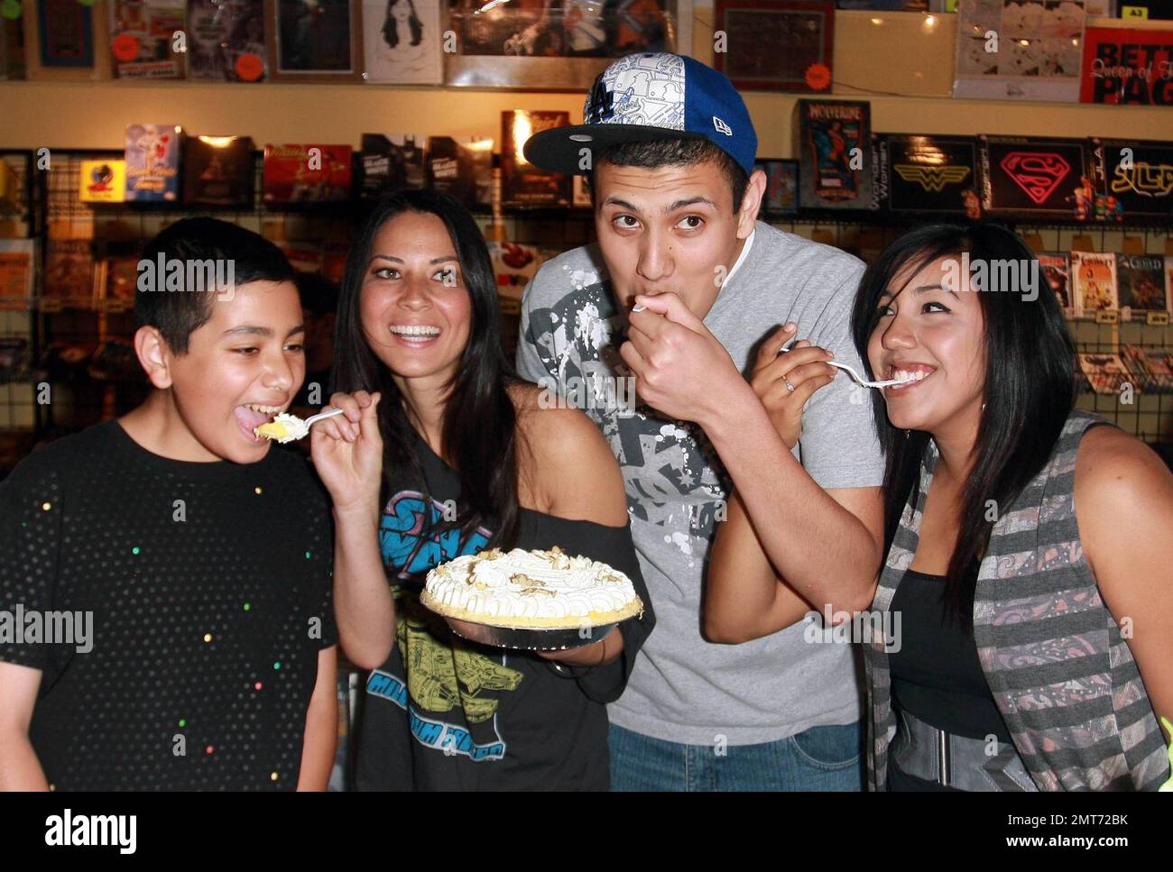 Iron Man 2" actress Olivia Munn poses with fans and has some fun at a secret meet-up for members of her 'OMFG' fan group at Golden Apple comics on Melrose in Hollywood.