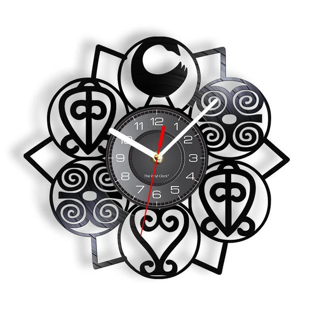 Gana Adinkra sembolleri güç Retro vinil albüm aşk bilgelik umut duvar saati gücü vinil Disk el sanatları batı afrika ev dekor - AliExpress