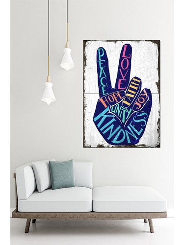 Tablomega Barış Aşk Umut Tasarım Ahşap Tablo 70CMX 100CM Fiyatı