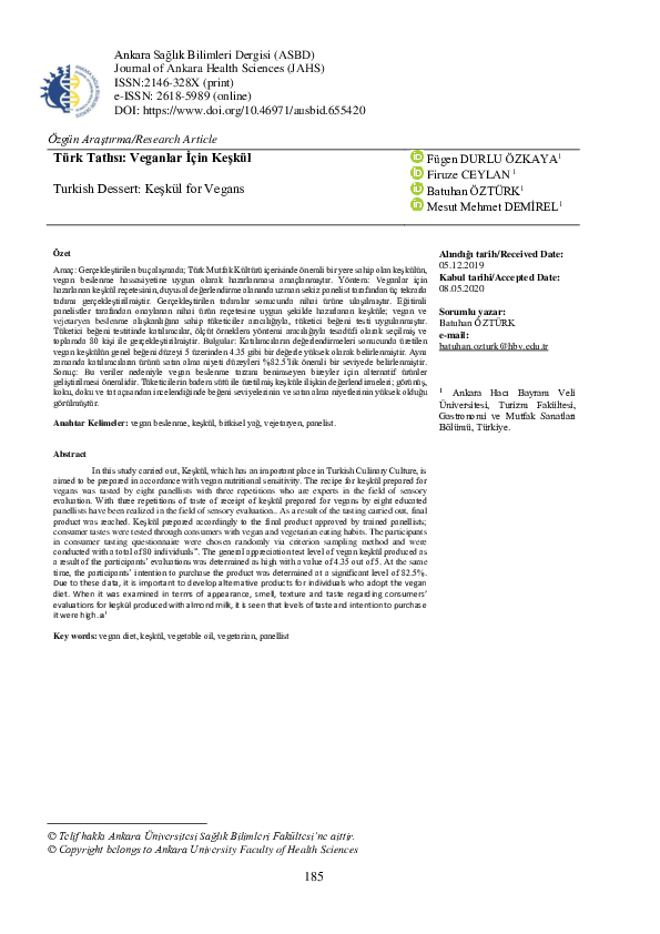 PDF) Türk Tatlisi: Veganlar İçi̇n Keşkül | Prof.Dr. FÜGEN DURLU ÖZKAYA - Academia.edu