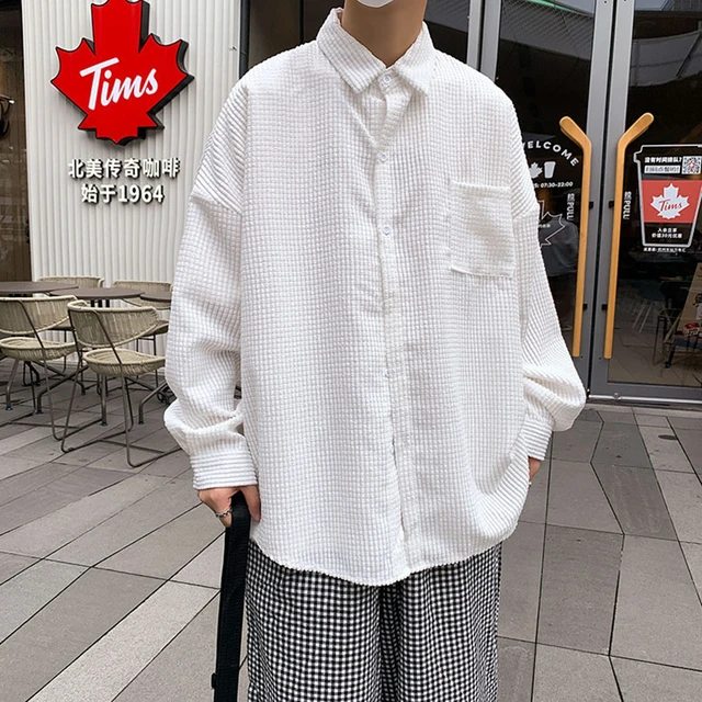Erkek gömlek Harajuku siyah gömlek kore tarzı erkekler gömlek uzun kollu Vintage giyim Streetwear erkekler giyim