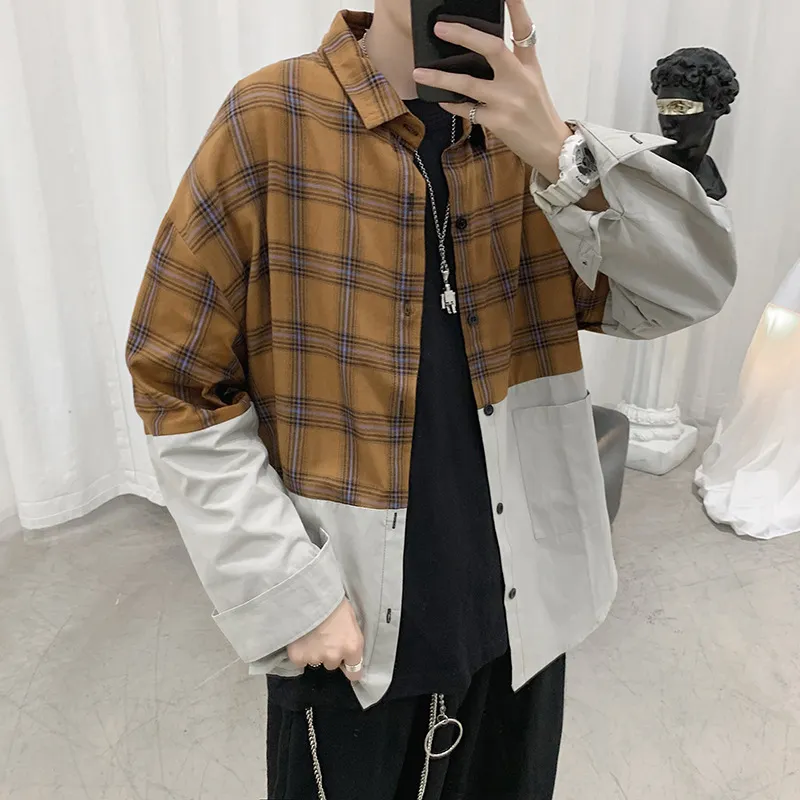 Almak Gömlek Erkekler Japon Vintage Ekose Gevşek Moda Rahat Sonbahar Yakışıklı Gotik Harajuku Turn-aşağı Yaka Tüm Maç Giyim Erkek > Erkek Giyim \\ www.pinkapple.com.tr