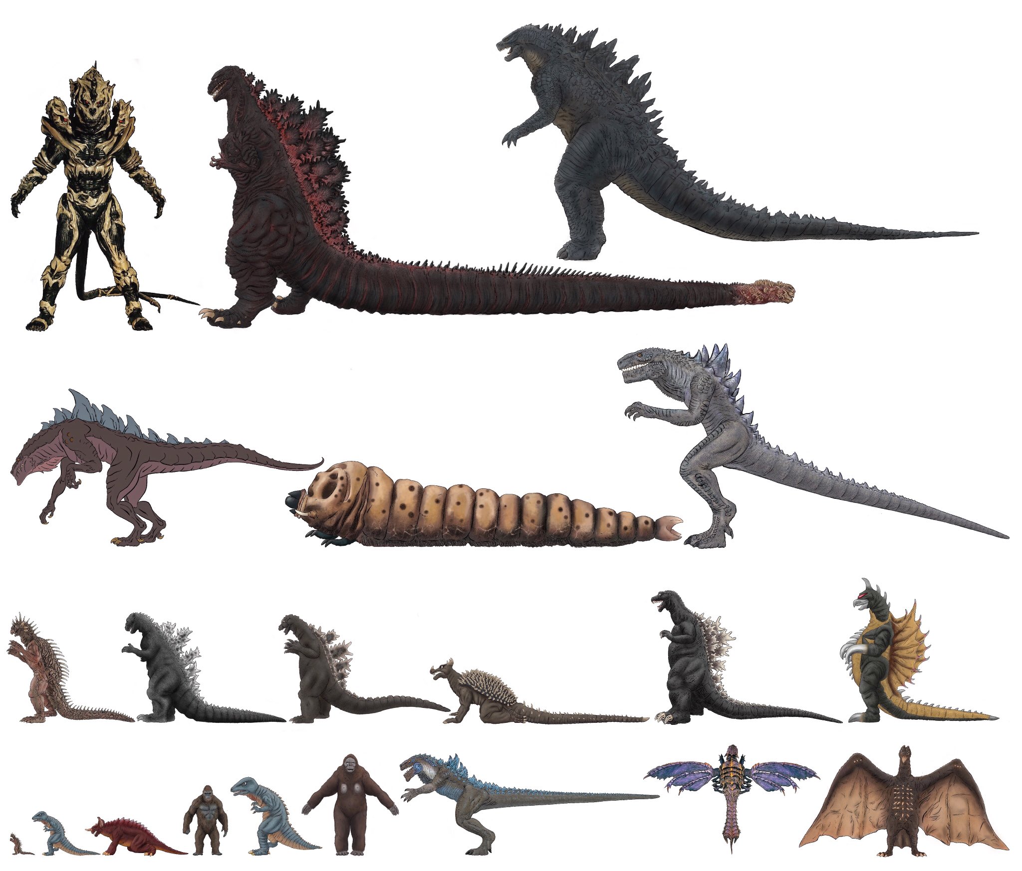 Kaijuzilla on X: "Went back to work on the #kaijusizechart (made using official stats), since I haven't worked on it in awhile. #varan #gorosaurus #baragon #kingkong #godzilla1998 #megaguirus #rodan #Godzilla #anguirus #gigan #